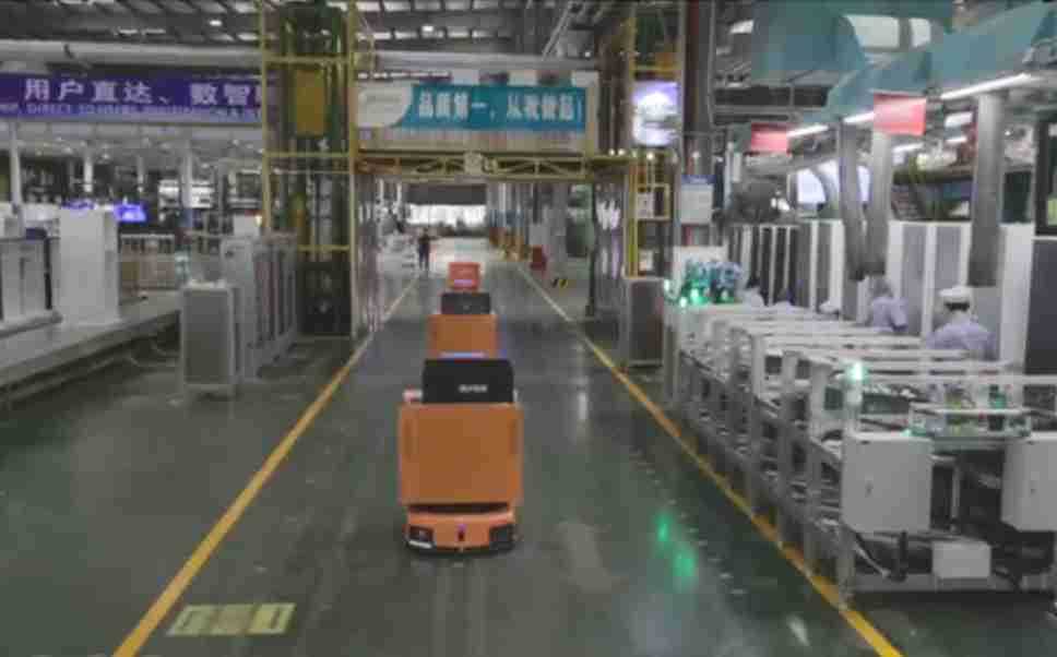 为车载冰箱物流配送打造的智能解决方案,,包含产中物流通过潜伏举升AMR搬运至线边,,产后成品物流智能仓储,,流程包含产中物流智能齐套入库,,,线边安灯叫料AMR智能配送至线边,,,成品入库、、、、出库,,,,通过无人堆高车机器人,,,,智能仓储管理替代人工作业管理,,实现更高存储、、、、更高效率、、、更具柔性化的解决方案。。